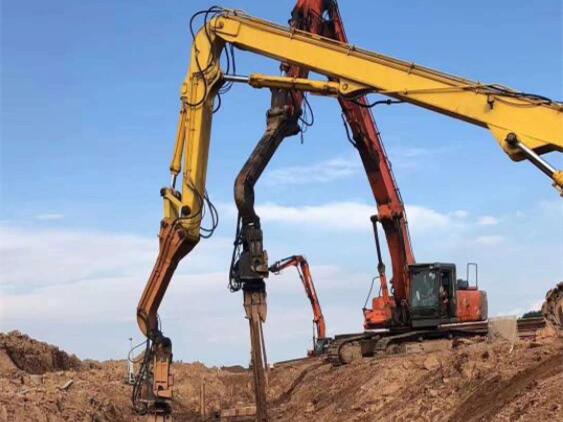 加長(zhǎng)臂挖機(jī)河道堤壩的修筑和清淤